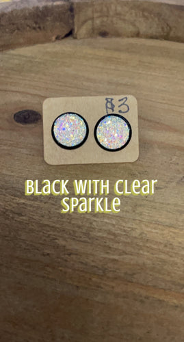 Sports- Clear Sparkle Druzy with Black Detail Studs